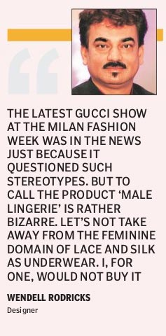 Designer Wendell Rodricks thinks the trend is bizarre. “The latest Gucci show at the Milan Fashion Week was in the news just because it questioned such stereotypes. But to call the product ‘male lingerie’ is rather bizarre. Let’s not take away from the feminine domain of lace and silk as underwear. I, for one, would not buy it.”