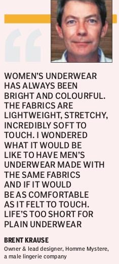 Brent Krause, owner and lead designer for Homme Mystere, a male lingerie company operating out of Queensland in Australia, thought it would be a whacky idea to come up with intimate wear for men, taking the cue from female lingerie. “Women’s underwear in stores has always been bright and colourful. The fabrics are lightweight, stretchy, incredibly soft to touch. I wondered what it would be like to have men’s underwear made with the same fabrics and if it would be as comfortable as it felt to touch,” he explains.