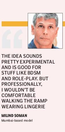 But not everyone is a runaway fan though. “The idea sounds pretty experimental and is good for stuff like BDSM (bondage, discipline, sadism and masochism) and role-play. But professionally, I wouldn’t be comfortable walking the ramp wearing lingerie,” says Mumbai-based model Milind Soman.