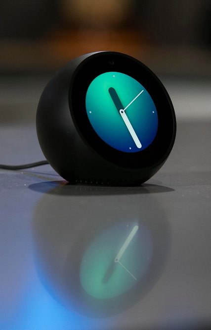 Echo Spot, a $129.99 spherical device with a 2.5-inch touch screen, is Amazon’s version of an alarm clock. In addition to displaying the time and weather, its microphones will allow people to make phone calls, turn lights on and off and ask how long a morning commute will take. A tiny camera makes videoconferencing possible.