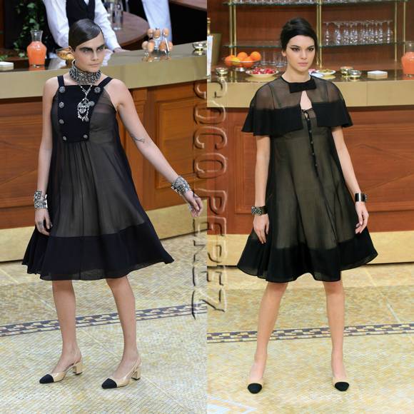 Not only did they wear similar sheer frocks, but Karl Lagerfeld must love seeing these two so much he even had them walk down together!