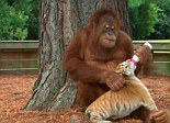 Mr Mom: Gentle male Orangutan bottle feeds three tiger cubs