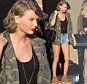 <!– Nice ride: Sporting matching bottoms, the sexy model held onto the hand rail on the roof of the train as she sashayed and shimmied for the camera