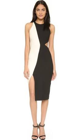 Can we agree that some things just look better in black and white like old movies, and photographs and in this case– Behati’s dress. These opposing colors work in tandem to give an overall fresh, sleek and clean appeal.
