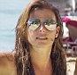 In her usual beach style, she pulled her tresses into a simple bun while showing off her flawless complexion through her cosmetic free visage.