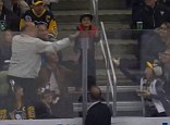 Man steals puck from right under the nose of a little kid