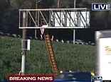 Body of a man recovered from the top of a freeway sign