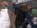 Shocking moment drunk man’s arm is ripped off by a caged…