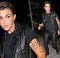 She teams the brassiere with a tiny black thong, while nonchalantly caping a leather jacket over her shoulders and posing with a set of golden headphones.