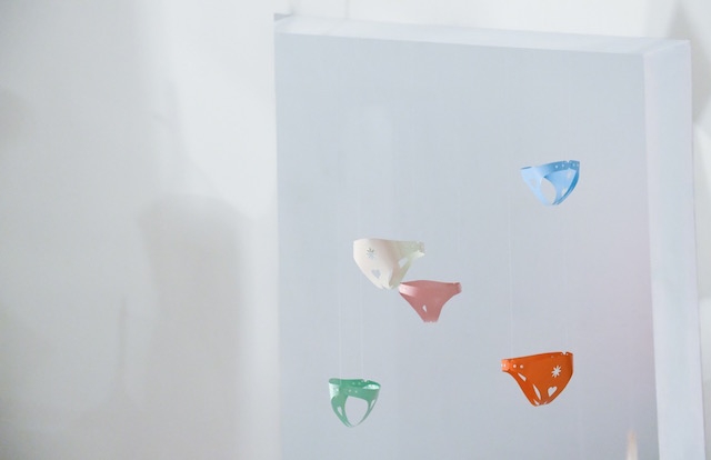 In LA’s Papillion Art’s main salon, soft daylight enters and casts a warm glow on the hanging undergarments. Silk slips, cone bras, girdles, garter belts and a host of other unmentionables are delicately suspended from the ceiling in this immersive installation, further complemented by sheer colored stockings modeled on various mannequin legs throughout the space. Buckman sourced the lingerie from vintage boutiques, eBay, and Etsy, intentionally selecting items from the early 1900s to the 60s—to illustrate the evolution of women’s bodies throughout the decades.