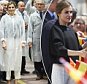 New look, Letizia? Queen of Spain covers her chic outfit…
