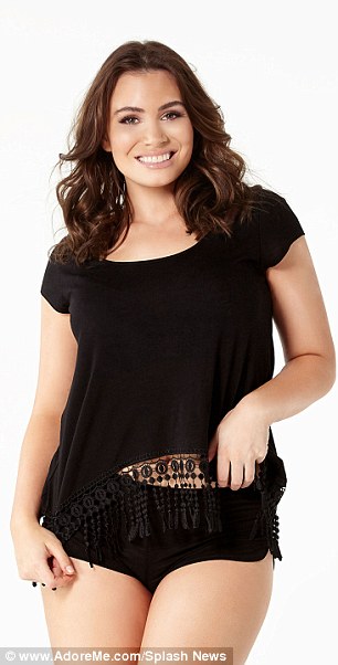 Sitting pretty: Another image from the Adore Me campaign shows Sophie emphasising her ample assets in a pretty lace camisole