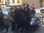 Arrivals: The groom’s sister-in-law Alice Goldsmith (left) wore a purple dress. Right: David de Rothschild