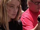 Bruised: Amber Heard leaving court in downtown Los Angeles