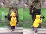 Lion attempts to POUNCE on little boy but slams into glass