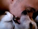 Dog really loves being kissed by his owner