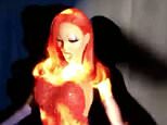 To finish off the look, the star added a silky robe, bright red wig and thigh high boots, and had bold red lips, heavy eye makeup and blood dripping from her mouth.