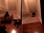 Cat tricked into taking a ride down staircase in a box