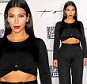 She teamed a dog-tooth pink cropped-style corset, which showed off her killer abs, with a fluorescent pink pencil skirt and nude stilletto heels.