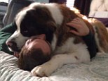 Saint Bernard dog pins owner down and refuses to let him go