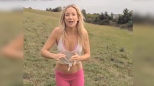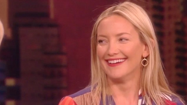 Kate Hudson reveals her lacy pink lingerie in transparent grey blouse as she …