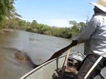 Incredible footage of man taking giant anaconda by the tail