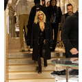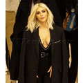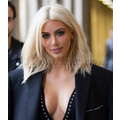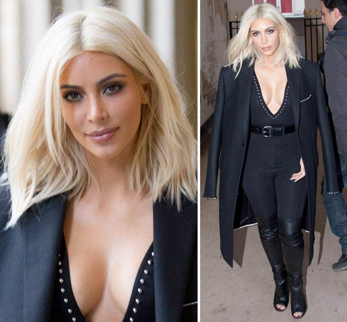 Kim Kardashian put her massive boobs on display to go shopping for lingerie at La Perla in Paris yesterday, and we’re still not sure if her cleavage or her new platinum blonde hair is more distracting. Gone are her days of extensions and pencil skirts, now she’s all about the all black Gothic outfits and edgy ‘do’s!