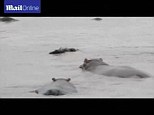The amazing moment hippos rescue a gnu from crocodile
