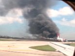 Plane on fire on the runway at Fort Lauderdale airport