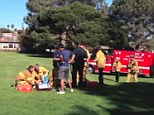 Paramedics work on Harrison Ford moments after crash landing