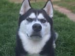 If looks could kill! Hilarious moment mean-looking husky is…