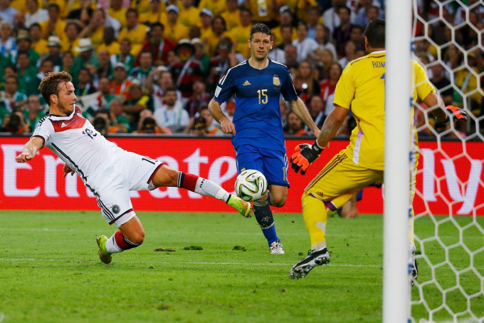 Goetze scores the winner against Argentina goalkeeper Sergio Romero during extra time.Photo: Reuters