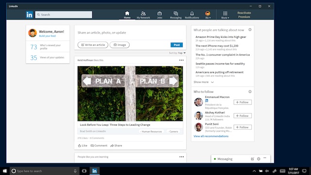 Microsoft Launches LinkedIn App For Windows 10 PCs