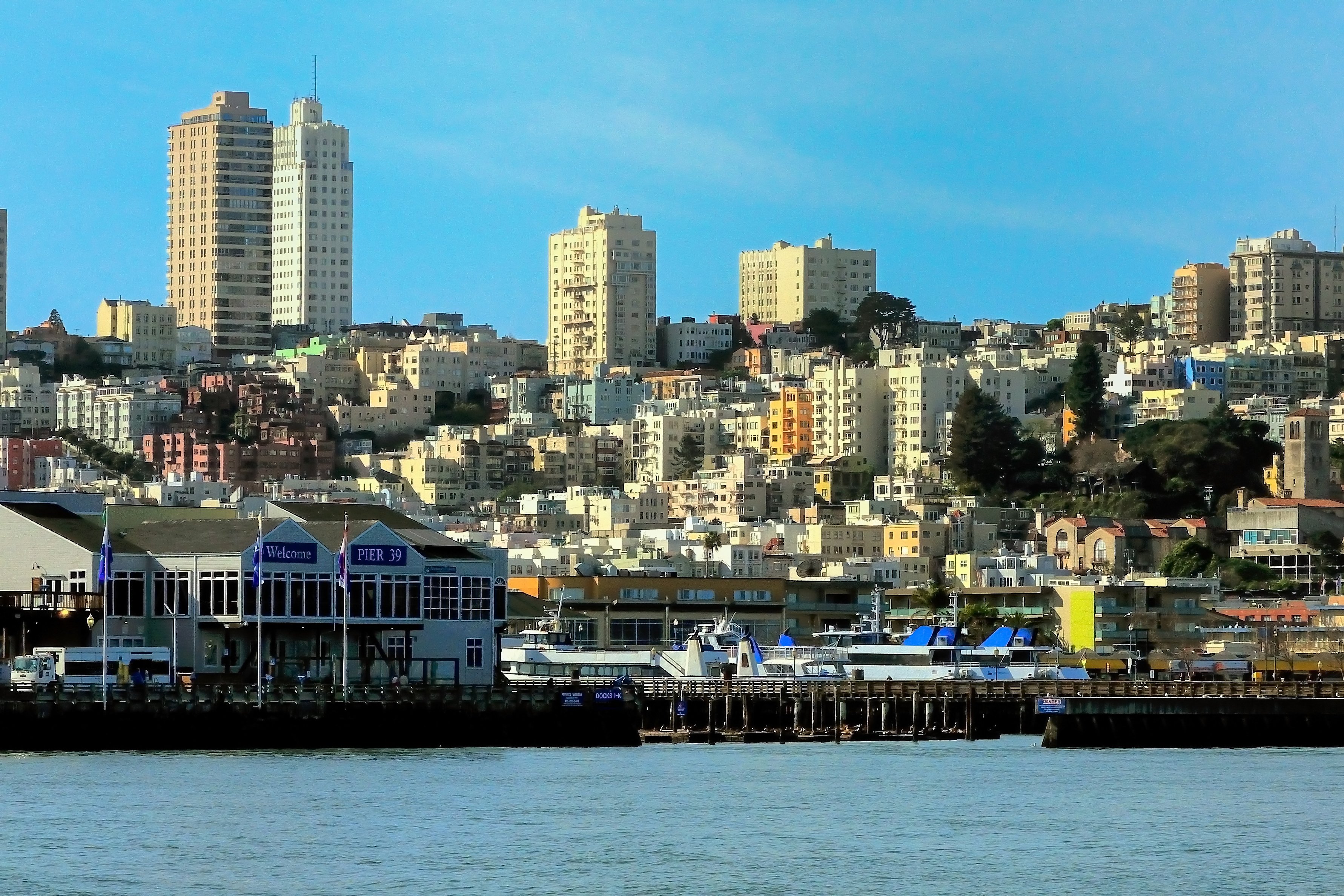 San Francisco rises behind Pier 39 in a file image. (Credit: iStock / Getty Images)