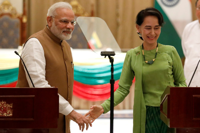 Above, Prime Minister Narendra Modi of India met with the Myanmar leader, Daw Aung San Suu Kyi, but there were no reports that he raised the issue of the Rohingya.