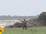 Brazilian TV host Richard Rasmussen runs from raging waters
