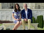 Duke and Duchess of Cambridge sit on bench at the Taj Mahal