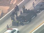 A vision: Wearing her short blonde locks in styled curls, she also rocked a pair of stockings and a classic set of black heeled shoes