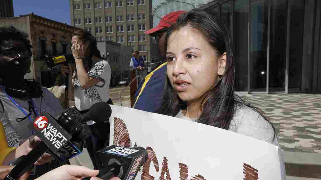 Brenda Ramirez, 18, speaks to reporters about the opportunities she receives via the DACA program during a protest earlier this month in downtown Jackson, Miss.