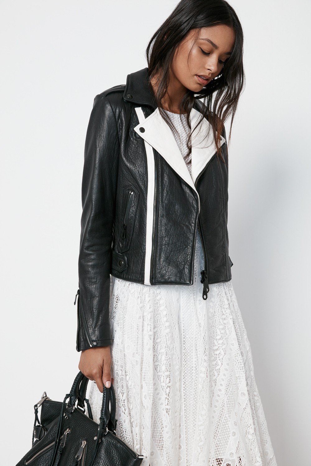 To shop around for more monochrome leather bikers, browse our edit below with similar styles from Rebecca Minkoff, G Star and more.