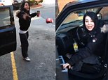 Covering up: She shrouded her shape with a long black coat and a bright blue scarf