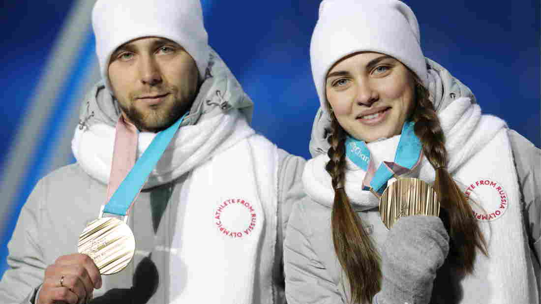 Bronze medalist Aleksandr Krushelnitckii is under suspicion for a failed drug test at the Pyeongchang Winter Olympics. He’s seen here with his wife and Olympic Athletes from Russia curling teammate Anastasia Bryzgalova, as they received their bronze medals.