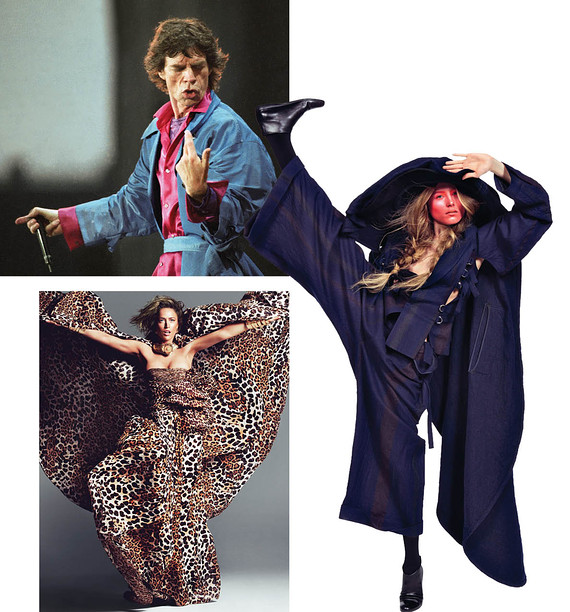 LIVE-ACTION PLAY | Clockwise from top left: Mick Jagger on stage in 1998; Dree Hemingway aims high for French Vogue, 2009; Raquel Zimmermann strikes a pose for French Vogue, 2011.