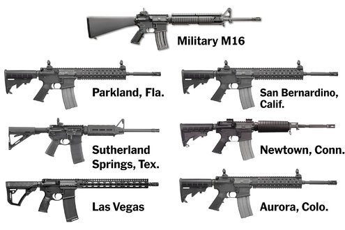When a gunman walked into a Florida school on Feb. 14, his rifle let him fire in much the same way that many American soldiers and Marines would fire M16 and M4 rifles in combat.