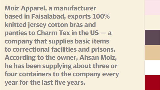 These 300-plus women are employees at one of the largest local manufacturers of women’s undergarments — a company that supplies bras, briefs, chemises, camisoles and nightwear to nearly 150 cities in Pakistan. Market research or official statistics indicating the full size of the undergarments business in the country are practically nonexistent. But those familiar with the trade confess that prospects of production and projected growth are huge.