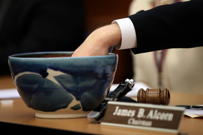 The drawing was held with the three members of the State Elections Board seated at a long table. Noting that they usually attracted only one or two journalists to their meetings, the members sounded and acted a bit nervous.