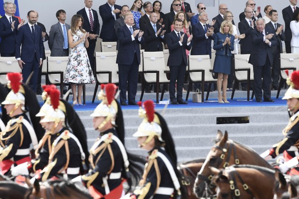 French President Emmanuel Macron and President Trump attend a military parade as part of the Bastille Day celebrations on Friday. (Ian Langsdon/European Pressphoto Agency)
